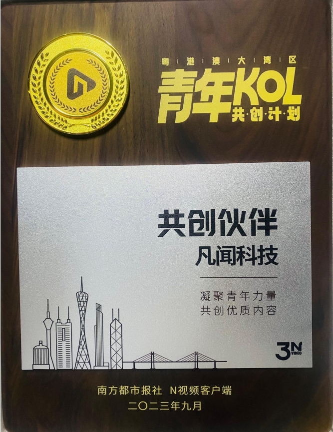 凡闻科技作为南方都市报联名单位受邀参会,并在典礼上荣获“粤港澳大湾区青年 KOL 共创计划-共创伙伴”。