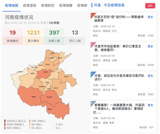 定制信息,随点随查如图,在为河南省定制的区域疫情状态中,每个地市的疫情信息可以通过点击进行查阅。一键键入所在地城市名称,即可获取城市疫情资讯。