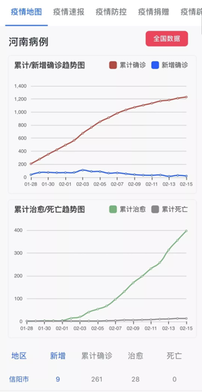 简要双色线,连续跟踪地市累计、新增病例等信息。