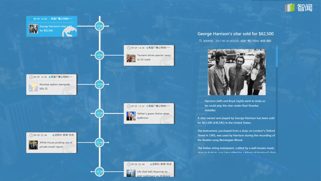 通过滚动时间轴的方式展现新闻的发布情况,让用户直观了解事件发生的时间顺序。