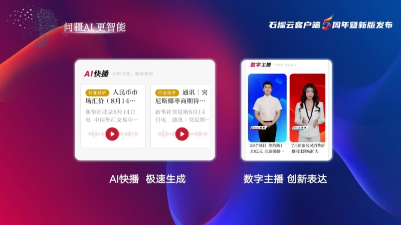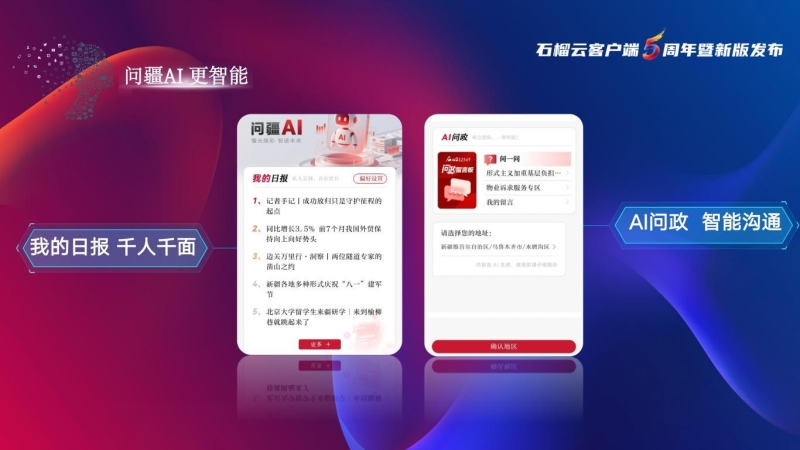 石榴云客户端相关负责人表示,新版客户端上线,顺应了人工智能发展要求,今后将坚持智能化方向、加速升级迭代,以更精彩内容、更优质服务、更开放生态,不断改善用户体验,持续壮大主流思想舆论,全力打造国内一流现代化主流媒体新闻旗舰。