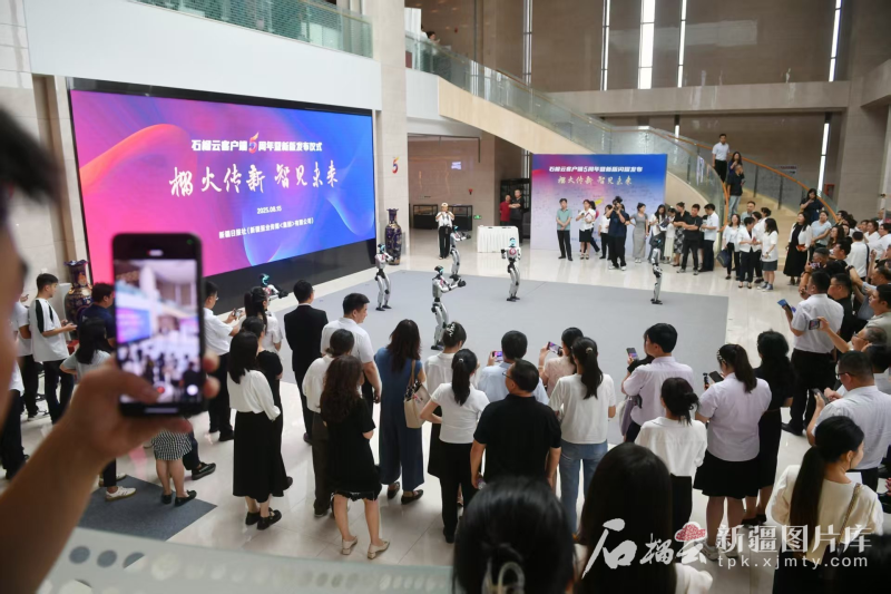 8月15日,石榴云机器人为参会嘉宾表演舞蹈。石榴云/新疆日报记者 邹懿摄